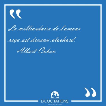 ![Le milliardaire de l'amour reçu est devenu [...] - Albert Cohen... Le milliardaire de l'amour reçu est devenu [...] - Albert Cohen...](/imagescitations/Le_milliardaire_de_l_amour_recu_est_devenu_-_Albert_Cohen-148554.jpg)