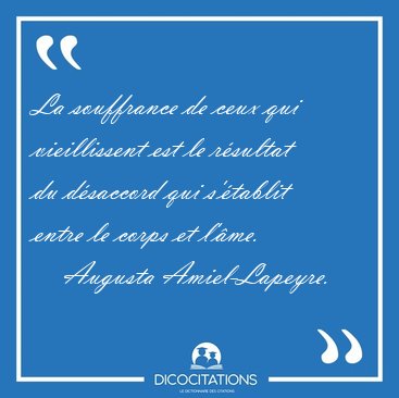 ![La souffrance de ceux qui vieillissent est le résultat du [...] - Augusta Amiel-Lapeyre... La souffrance de ceux qui vieillissent est le résultat du [...] - Augusta Amiel-Lapeyre...](/imagescitations/La_souffrance_de_ceux_qui_vieillissent_est_le_resultat_du_-_Augusta_Amiel-Lapeyre-148671.jpg)