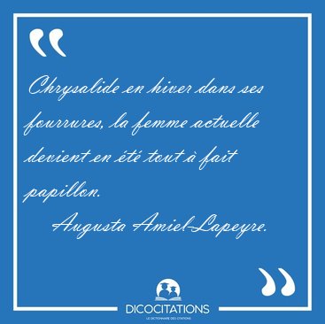 ![Chrysalide en hiver dans ses fourrures, la femme actuelle [...] - Augusta Amiel-Lapeyre... Chrysalide en hiver dans ses fourrures, la femme actuelle [...] - Augusta Amiel-Lapeyre...](/imagescitations/Chrysalide_en_hiver_dans_ses_fourrures_la_femme_actuelle_-_Augusta_Amiel-Lapeyre-148790.jpg)