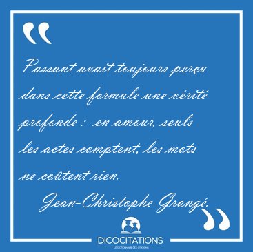 Passant avait toujours perçu dans cette formule une vérité profonde : en amour, seuls les actes comptent, les mots ne coûtent rien.