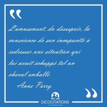 ![L'amusement, du désespoir, la conscience de son incapacité à [...] - Anne Perry... L'amusement, du désespoir, la conscience de son incapacité à [...] - Anne Perry...](/imagescitations/L_amusement_du_desespoir_la_conscience_de_son_incapacite_a_-_Anne_Perry-149066.jpg)