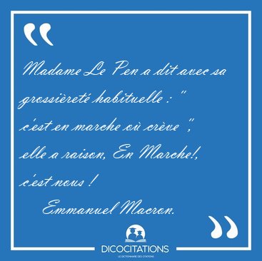 Madame Le Pen a dit avec sa grossièreté habituelle : " c'est en marche où crève ", elle a raison, En Marche!, c'est nous !