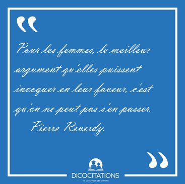 ![Pour les femmes, le meilleur argument qu'elles puissent invoquer [...] - Pierre Reverdy... Pour les femmes, le meilleur argument qu'elles puissent invoquer [...] - Pierre Reverdy...](/imagescitations/Pour_les_femmes_le_meilleur_argument_qu_elles_puissent_invoquer_-_Pierre_Reverdy-14971.jpg)