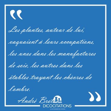 Les plantes, autour de lui, vaquaient à leurs occupations, les unes dans les manufactures de soie, les autres dans les étables trayant les chèvres de l'ombre.