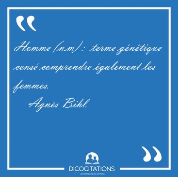 ![Homme (n.m) : terme génétique censé comprendre également les [...] - Agnès Bihl... Homme (n.m) : terme génétique censé comprendre également les [...] - Agnès Bihl...](/imagescitations/Homme_n_m_terme_genetique_cense_comprendre_egalement_les_-_Agnes_Bihl-150305.jpg)
