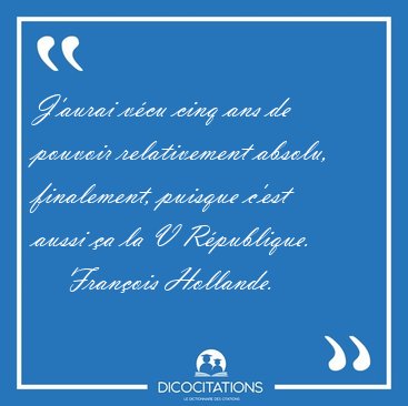 J'aurai vécu cinq ans de pouvoir relativement absolu, finalement, puisque c'est aussi ça la V République.