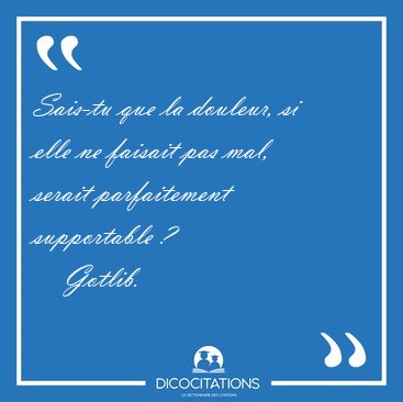 ![Sais-tu que la douleur, si elle ne faisait pas mal, serait [...] - Gotlib... Sais-tu que la douleur, si elle ne faisait pas mal, serait [...] - Gotlib...](/imagescitations/Sais-tu_que_la_douleur_si_elle_ne_faisait_pas_mal_serait_-_Gotlib-151505.jpg)
