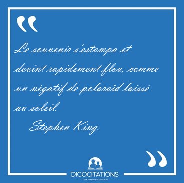 ![Le souvenir s'estompa et devint rapidement flou, comme un [...] - Stephen King... Le souvenir s'estompa et devint rapidement flou, comme un [...] - Stephen King...](/imagescitations/Le_souvenir_s_estompa_et_devint_rapidement_flou_comme_un_-_Stephen_King-151724.jpg)