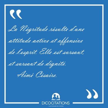 La Négritude résulte d'une attitude active et offensive de l'esprit. Elle est sursaut, et sursaut de dignité.
