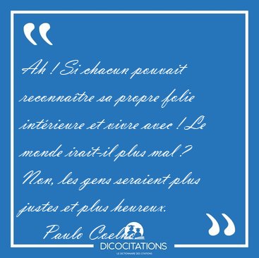 ![Ah ! Si chacun pouvait reconnaître sa propre folie intérieure et [...] - Paulo Coelho... Ah ! Si chacun pouvait reconnaître sa propre folie intérieure et [...] - Paulo Coelho...](/imagescitations/Ah_Si_chacun_pouvait_reconnaitre_sa_propre_folie_interieure_et_-_Paulo_Coelho-151962.jpg)