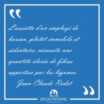 ![L'assiette d'un employé de bureau, plutôt immobile et [...] - Jean-Claude Rodet... L'assiette d'un employé de bureau, plutôt immobile et [...] - Jean-Claude Rodet...](/imagescitations/L_assiette_d_un_employe_de_bureau_plutot_immobile_et_-_Jean-Claude_Rodet-152264.jpg)