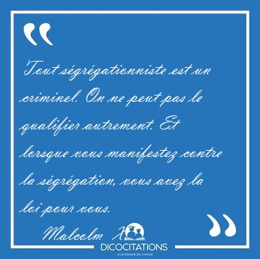 ![Tout ségrégationniste est un criminel. On ne peut pas le [...] - Malcolm X... Tout ségrégationniste est un criminel. On ne peut pas le [...] - Malcolm X...](/imagescitations/Tout_segregationniste_est_un_criminel_On_ne_peut_pas_le_-_Malcolm_X-152738.jpg)