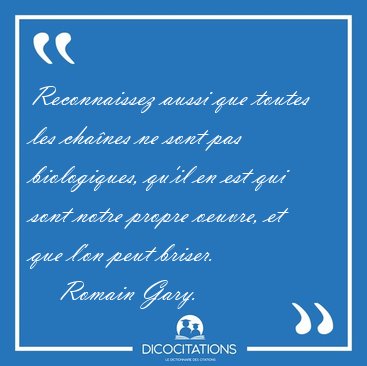 Reconnaissez aussi que toutes les chaînes ne sont pas biologiques, qu'il en est qui sont notre propre oeuvre, et que l'on peut briser.
