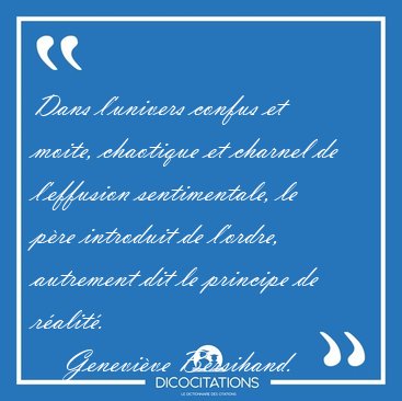 ![Dans l'univers confus et moite, chaotique et charnel de [...] - Geneviève Bersihand... Dans l'univers confus et moite, chaotique et charnel de [...] - Geneviève Bersihand...](/imagescitations/Dans_l_univers_confus_et_moite_chaotique_et_charnel_de_-_Genevieve_Bersihand-155484.jpg)