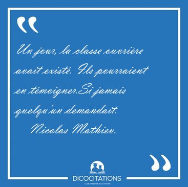 ![Un jour, la classe ouvrière avait existé. Ils pourraient en [...] - Nicolas Mathieu... Un jour, la classe ouvrière avait existé. Ils pourraient en [...] - Nicolas Mathieu...](/imagescitations/Un_jour_la_classe_ouvriere_avait_existe_Ils_pourraient_en_-_Nicolas_Mathieu-155924.jpg)