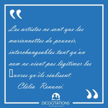 ![Les artistes ne sont que les marionnettes du pouvoir, [...] - Clélia Renucci... Les artistes ne sont que les marionnettes du pouvoir, [...] - Clélia Renucci...](/imagescitations/Les_artistes_ne_sont_que_les_marionnettes_du_pouvoir_-_Clelia_Renucci-156942.jpg)