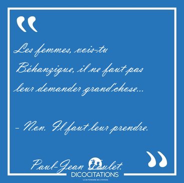 ![Les femmes, vois-tu Béhanzigue, il ne faut pas leur demander [...] - Paul-Jean Toulet... Les femmes, vois-tu Béhanzigue, il ne faut pas leur demander [...] - Paul-Jean Toulet...](/imagescitations/Les_femmes_vois-tu_Behanzigue_il_ne_faut_pas_leur_demander_-_Paul-Jean_Toulet-156968.jpg)