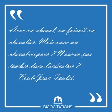 ![Avec un cheval, on faisait un chevalier. Mais avec un [...] - Paul-Jean Toulet... Avec un cheval, on faisait un chevalier. Mais avec un [...] - Paul-Jean Toulet...](/imagescitations/Avec_un_cheval_on_faisait_un_chevalier_Mais_avec_un_-_Paul-Jean_Toulet-157000.jpg)