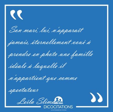 ![Son mari, lui, n'apparaît jamais, éternellement voué à prendre [...] - Leïla Slimani... Son mari, lui, n'apparaît jamais, éternellement voué à prendre [...] - Leïla Slimani...](/imagescitations/Son_mari_lui_n_apparait_jamais_eternellement_voue_a_prendre_-_Leila_Slimani-157096.jpg)