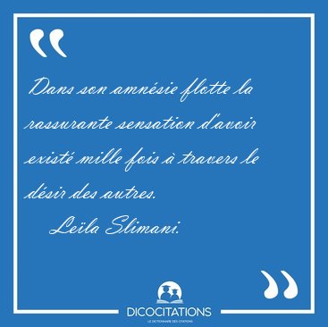 ![Dans son amnésie flotte la rassurante sensation d'avoir existé [...] - Leïla Slimani... Dans son amnésie flotte la rassurante sensation d'avoir existé [...] - Leïla Slimani...](/imagescitations/Dans_son_amnesie_flotte_la_rassurante_sensation_d_avoir_existe_-_Leila_Slimani-157124.jpg)