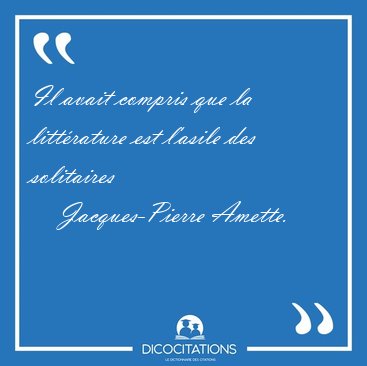 ![Il avait compris que la littérature est l'asile des [...] - Jacques-Pierre Amette... Il avait compris que la littérature est l'asile des [...] - Jacques-Pierre Amette...](/imagescitations/Il_avait_compris_que_la_litterature_est_l_asile_des_-_Jacques-Pierre_Amette-157389.jpg)