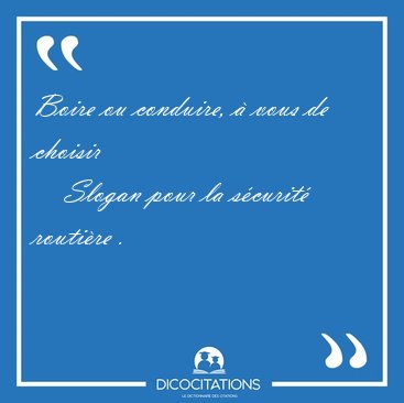 ![Boire ou conduire, à vous de [...] - Slogan pour la sécurité routière ... Boire ou conduire, à vous de [...] - Slogan pour la sécurité routière ...](/imagescitations/Boire_ou_conduire_a_vous_de_-_Slogan_pour_la_securite_routiere_-157829.jpg)