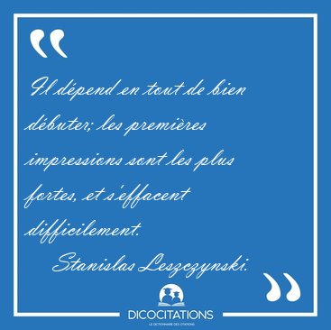 ![Il dépend en tout de bien débuter; les premières impressions [...] - Stanislas Leszczynski... Il dépend en tout de bien débuter; les premières impressions [...] - Stanislas Leszczynski...](/imagescitations/Il_depend_en_tout_de_bien_debuter_les_premieres_impressions_-_Stanislas_Leszczynski-158476.jpg)