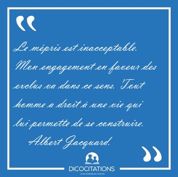 ![Le mépris est inacceptable. Mon engagement en faveur des exclus [...] - Albert Jacquard... Le mépris est inacceptable. Mon engagement en faveur des exclus [...] - Albert Jacquard...](/imagescitations/Le_mepris_est_inacceptable_Mon_engagement_en_faveur_des_exclus_-_Albert_Jacquard-159305.jpg)