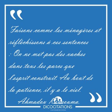 ![Faisons comme les ménagères et réfléchissons à ces sentences : [...] - Ahmadou Kourouma... Faisons comme les ménagères et réfléchissons à ces sentences : [...] - Ahmadou Kourouma...](/imagescitations/Faisons_comme_les_menageres_et_reflechissons_a_ces_sentences_-_Ahmadou_Kourouma-160435.jpg)
