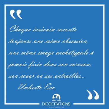 ![Chaque écrivain raconte toujours une même obsession, une même [...] - Umberto Eco... Chaque écrivain raconte toujours une même obsession, une même [...] - Umberto Eco...](/imagescitations/Chaque_ecrivain_raconte_toujours_une_meme_obsession_une_meme_-_Umberto_Eco-161249.jpg)