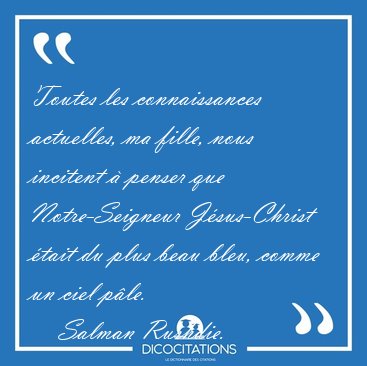 ![Toutes les connaissances actuelles, ma fille, nous incitent à [...] - Salman Rushdie... Toutes les connaissances actuelles, ma fille, nous incitent à [...] - Salman Rushdie...](/imagescitations/Toutes_les_connaissances_actuelles_ma_fille_nous_incitent_a_-_Salman_Rushdie-162517.jpg)