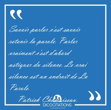 Savoir parler c'est savoir retenir la parole. Parler vraiment c'est d'abord astiquer du silence. Le vrai silence est un endroit de La Parole.