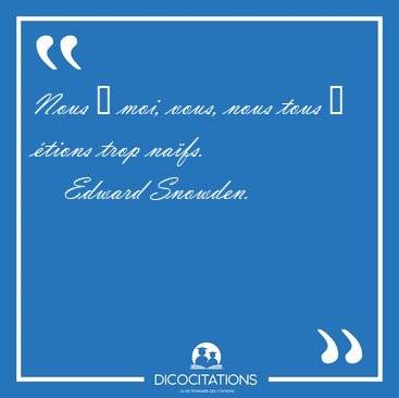 ![Nous – moi, vous, nous tous – étions trop [...] - Edward Snowden... Nous – moi, vous, nous tous – étions trop [...] - Edward Snowden...](/imagescitations/Nous_moi_vous_nous_tous_etions_trop_-_Edward_Snowden-163813.jpg)