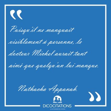 ![Puisqu'il ne manquait visiblement à personne, le docteur Michel [...] - Nathacha Appanah... Puisqu'il ne manquait visiblement à personne, le docteur Michel [...] - Nathacha Appanah...](/imagescitations/Puisqu_il_ne_manquait_visiblement_a_personne_le_docteur_Michel_-_Nathacha_Appanah-164158.jpg)