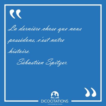 ![La dernière chose que nous possédons, c'est notre histoire. [...] - Sébastien Spitzer... La dernière chose que nous possédons, c'est notre histoire. [...] - Sébastien Spitzer...](/imagescitations/La_derniere_chose_que_nous_possedons_c_est_notre_histoire_-_Sebastien_Spitzer-164555.jpg)