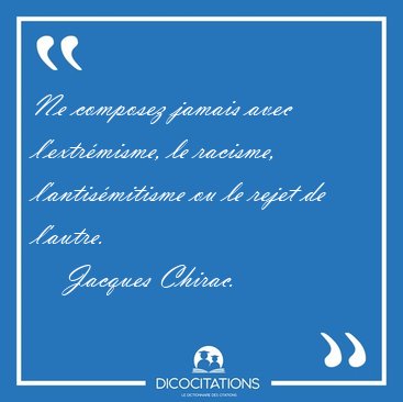 ![Ne composez jamais avec l'extrémisme, le racisme, [...] - Jacques Chirac... Ne composez jamais avec l'extrémisme, le racisme, [...] - Jacques Chirac...](/imagescitations/Ne_composez_jamais_avec_l_extremisme_le_racisme_-_Jacques_Chirac-164645.jpg)