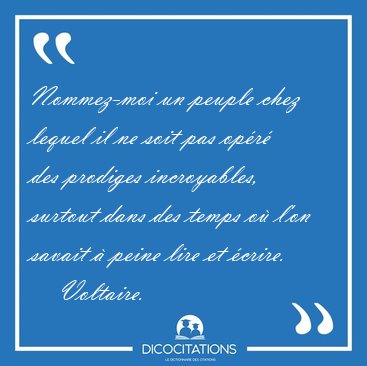 Nommez-moi un peuple chez lequel il ne soit pas opéré des prodiges incroyables, surtout dans des temps où l'on savait à peine lire et écrire.