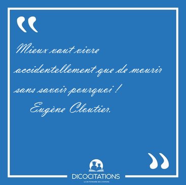 ![Mieux vaut vivre accidentellement que de mourir sans savoir [...] - Eugène Cloutier... Mieux vaut vivre accidentellement que de mourir sans savoir [...] - Eugène Cloutier...](/imagescitations/Mieux_vaut_vivre_accidentellement_que_de_mourir_sans_savoir_-_Eugene_Cloutier-165012.jpg)