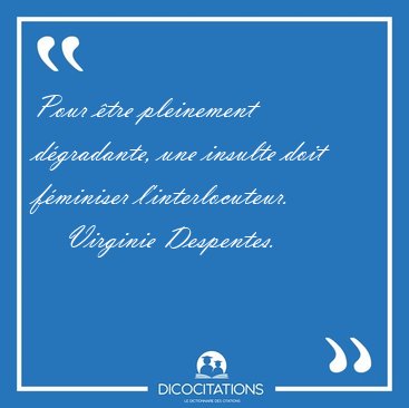 ![Pour être pleinement dégradante, une insulte doit féminiser [...] - Virginie Despentes... Pour être pleinement dégradante, une insulte doit féminiser [...] - Virginie Despentes...](/imagescitations/Pour_etre_pleinement_degradante_une_insulte_doit_feminiser_-_Virginie_Despentes-165630.jpg)