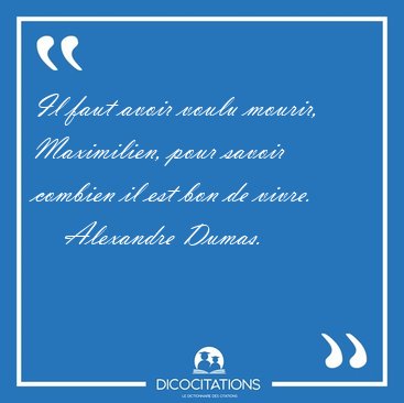![Il faut avoir voulu mourir, Maximilien, pour savoir combien il [...] - Alexandre Dumas... Il faut avoir voulu mourir, Maximilien, pour savoir combien il [...] - Alexandre Dumas...](/imagescitations/Il_faut_avoir_voulu_mourir_Maximilien_pour_savoir_combien_il_-_Alexandre_Dumas-165829.jpg)