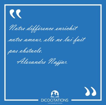 ![Notre différence enrichit notre amour, elle ne lui fait pas [...] - Alexandre Najjar... Notre différence enrichit notre amour, elle ne lui fait pas [...] - Alexandre Najjar...](/imagescitations/Notre_difference_enrichit_notre_amour_elle_ne_lui_fait_pas_-_Alexandre_Najjar-165949.jpg)