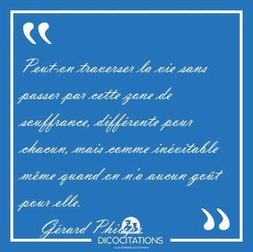 Peut-on traverser la vie sans passer par cette zone de souffrance, différente pour chacun, mais comme inévitable même quand on n'a aucun goût pour elle.