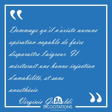 ![Dommage qu'il n'existe aucune opération capable de faire [...] - Virginie Grimaldi... Dommage qu'il n'existe aucune opération capable de faire [...] - Virginie Grimaldi...](/imagescitations/Dommage_qu_il_n_existe_aucune_operation_capable_de_faire_-_Virginie_Grimaldi-166557.jpg)