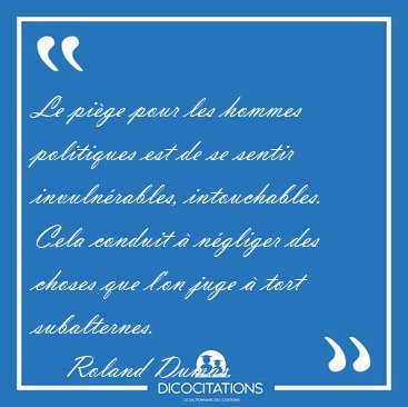 ![Le piège pour les hommes politiques est de se sentir [...] - Roland Dumas... Le piège pour les hommes politiques est de se sentir [...] - Roland Dumas...](/imagescitations/Le_piege_pour_les_hommes_politiques_est_de_se_sentir_-_Roland_Dumas-167802.jpg)
