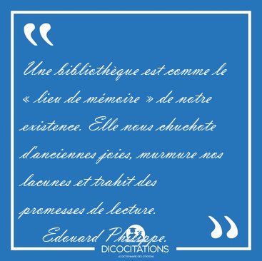 ![Une bibliothèque est comme le « lieu de mémoire » de notre [...] - Edouard Philippe... Une bibliothèque est comme le « lieu de mémoire » de notre [...] - Edouard Philippe...](/imagescitations/Une_bibliotheque_est_comme_le_lieu_de_memoire_de_notre_-_Edouard_Philippe-168041.jpg)