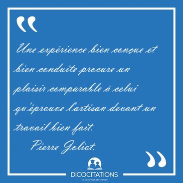 Une expérience bien conçue et bien conduite procure un plaisir comparable à celui qu'éprouve l'artisan devant un travail bien fait.