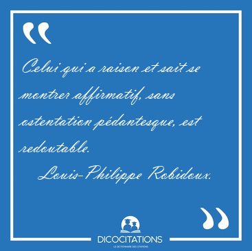 ![Celui qui a raison et sait se montrer affirmatif, sans [...] - Louis-Philippe Robidoux... Celui qui a raison et sait se montrer affirmatif, sans [...] - Louis-Philippe Robidoux...](/imagescitations/Celui_qui_a_raison_et_sait_se_montrer_affirmatif_sans_-_Louis-Philippe_Robidoux-168587.jpg)