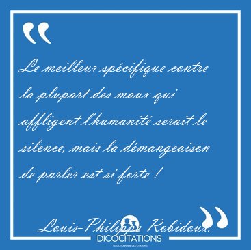 Le meilleur spécifique contre la plupart des maux qui affligent l'humanité serait le silence, mais la démangeaison de parler est si forte !