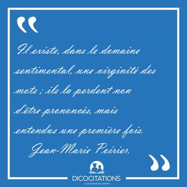 ![Il existe, dans le domaine sentimental, une virginité des mots ; [...] - Jean-Marie Poirier... Il existe, dans le domaine sentimental, une virginité des mots ; [...] - Jean-Marie Poirier...](/imagescitations/Il_existe_dans_le_domaine_sentimental_une_virginite_des_mots_-_Jean-Marie_Poirier-168652.jpg)