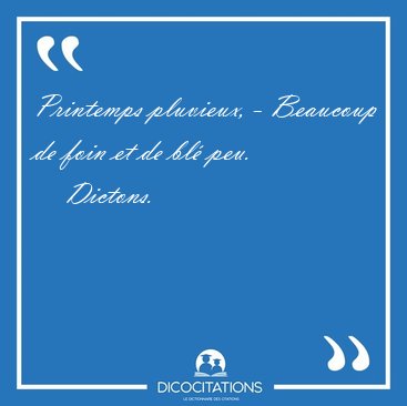 ![Printemps pluvieux, - Beaucoup de foin et de blé [...] - Dictons... Printemps pluvieux, - Beaucoup de foin et de blé [...] - Dictons...](/imagescitations/Printemps_pluvieux_-_Beaucoup_de_foin_et_de_ble_-_Dictons-16923.jpg)